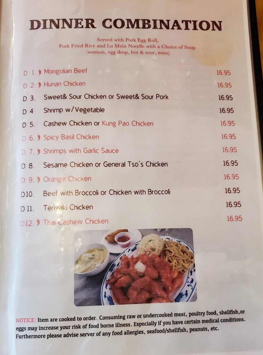 “ I'm here for 2 years 8 months. I've went to 3/4 chinese places in town. This is by far the ABSOLUTE best i won't be going anywhere else. Eggrolls crispy n tasty. Rice is brown. Not the disgusting yellow. Mongolian beef is spicy but awesome. Won ton soup n noodles all for 19(dinner menu Lunch ia cheaper) !!! Yes sir!!! Found my new favorite chinese spot My waiter was awesome atmosphere was authentic chinese as it gets in Alaska 10/10 ”